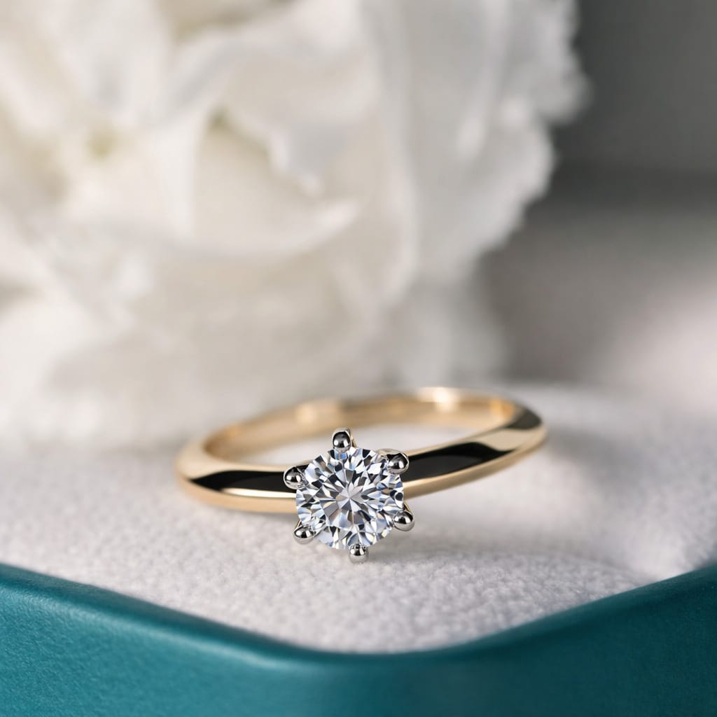 - Klasyczny solitaire doskonale prezentuje sam kamień – nic nie konkuruje z brylantem, więc całą uwagę skupia blask i proporcje diamentu.